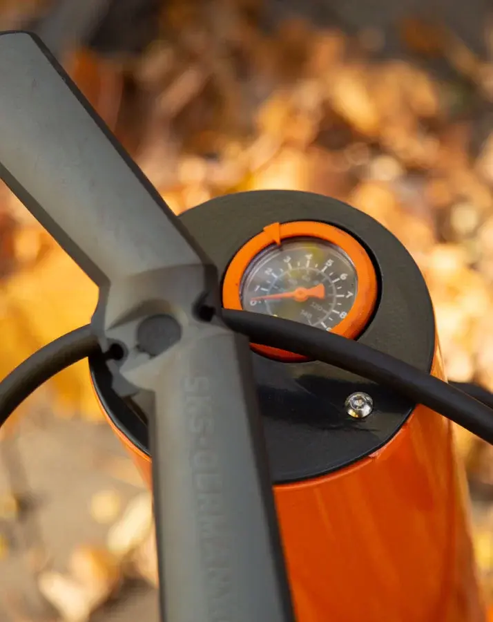 Stationaire handpomp met adapter voor alle soorten fietsventielen (Presta, Schrader en Dunlop) – drukbereik van 0÷10 BAR + Glycerine Manometer
